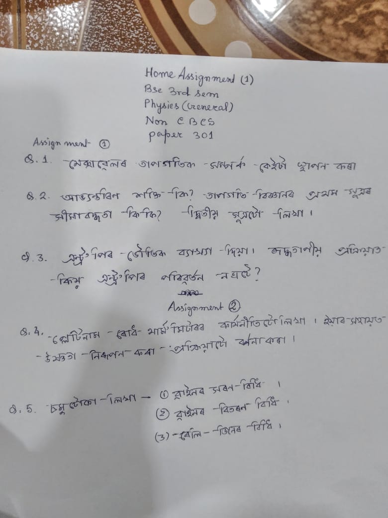 | MRINAL KUMAR MISHRA | TDC 3RD AND 4TH SEM SCIENCE | Physics 3rd sem Non cbcs | Home assignment | View |