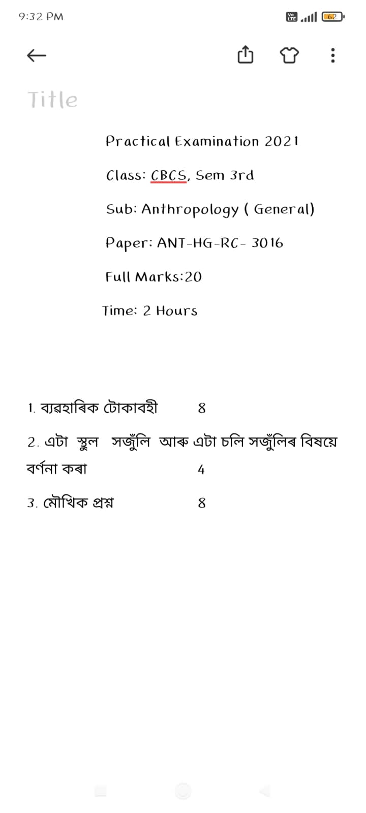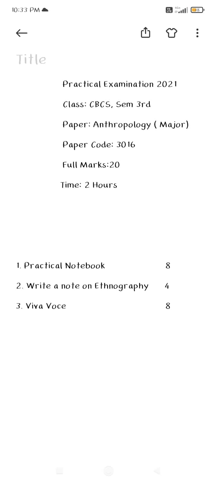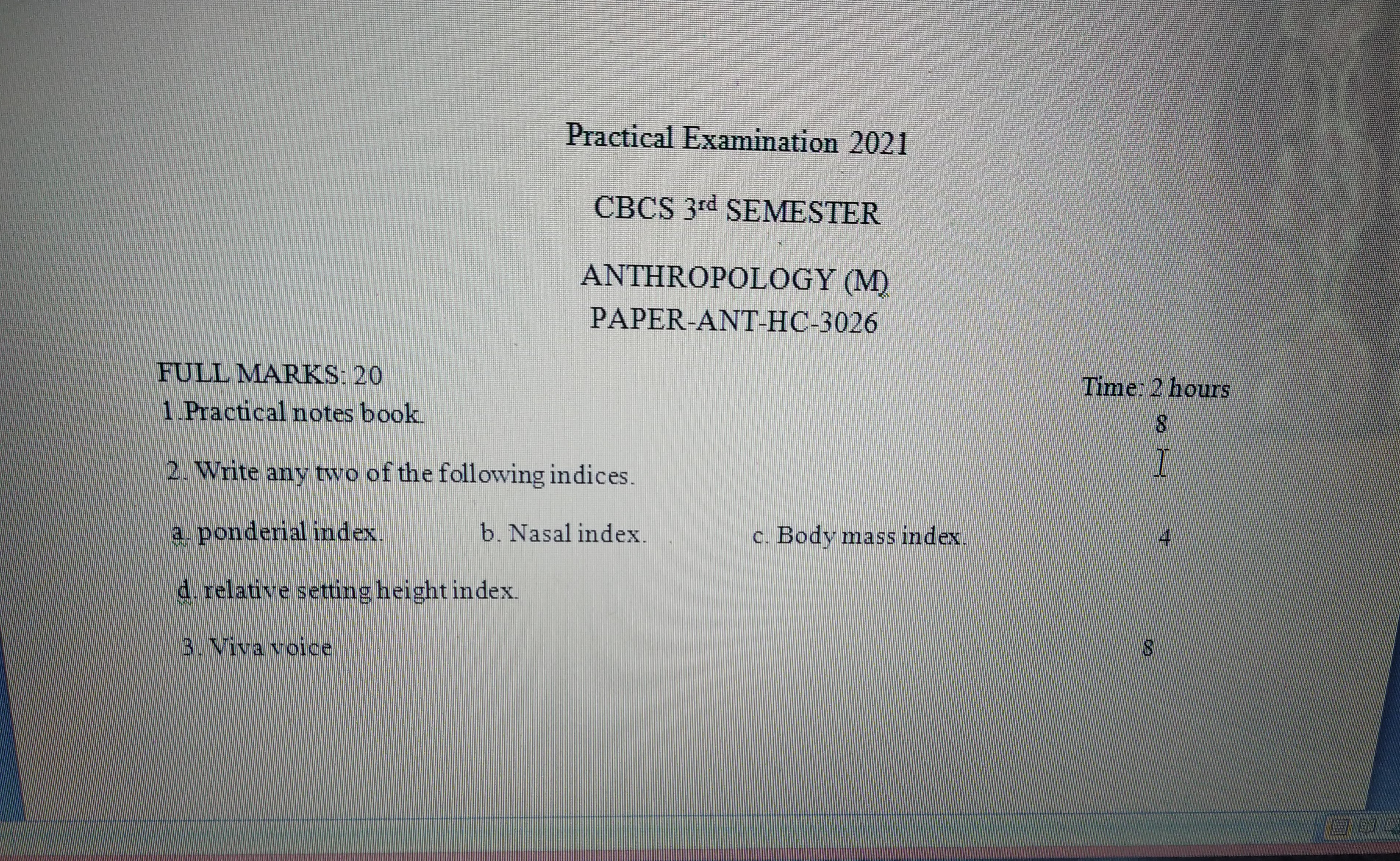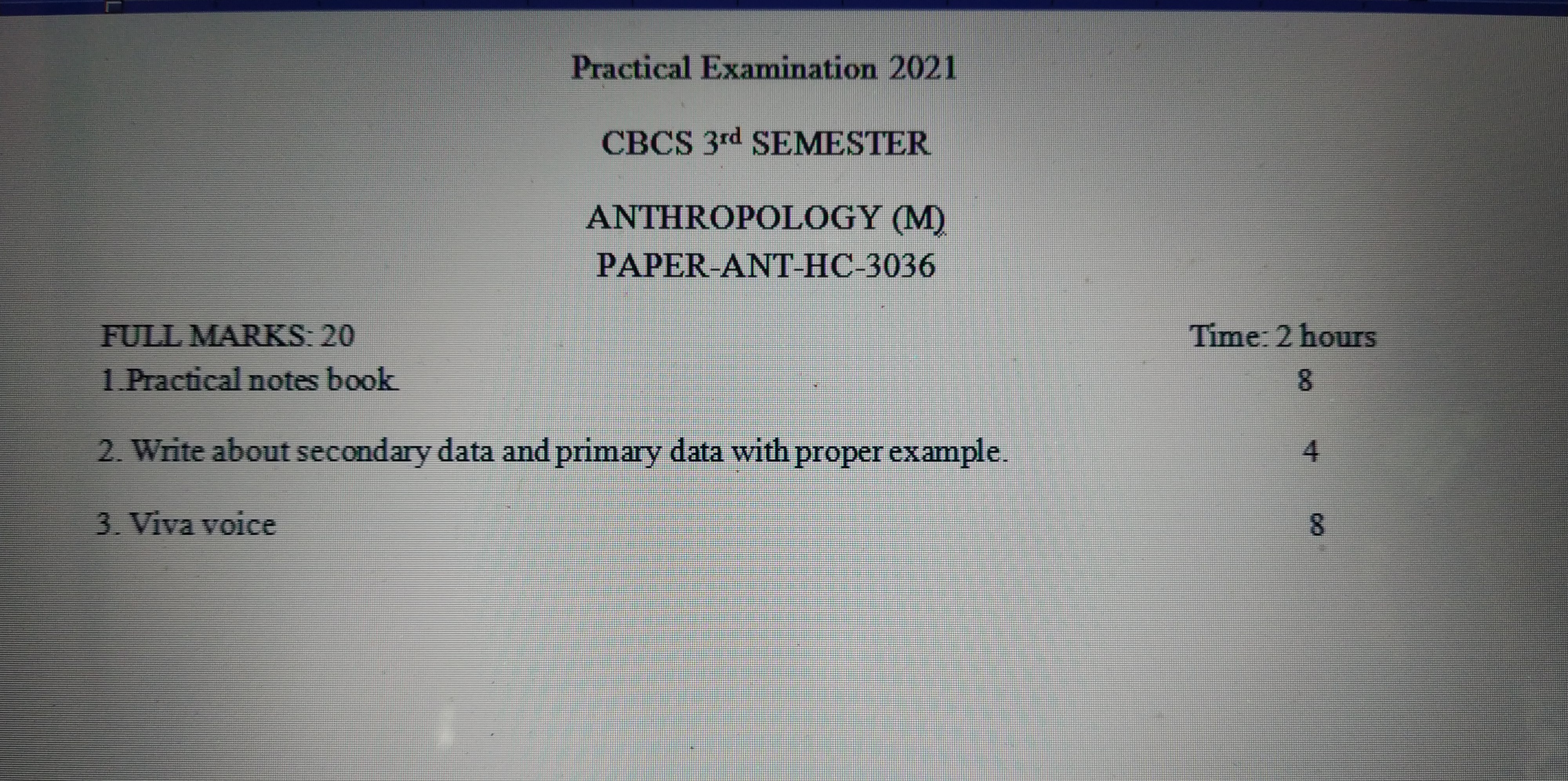 | MOMI OJAH | TDC 3RD AND 4TH SEM ARTS | Anthropology | Practical exam paper | View |