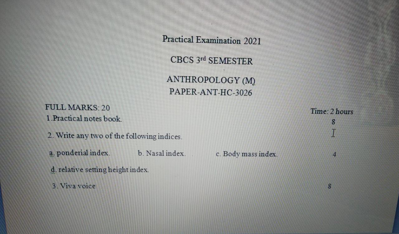 | MOMI OJAH | TDC 5TH AND 6TH SEM ARTS | Anthropology | Practical exam paper | View |